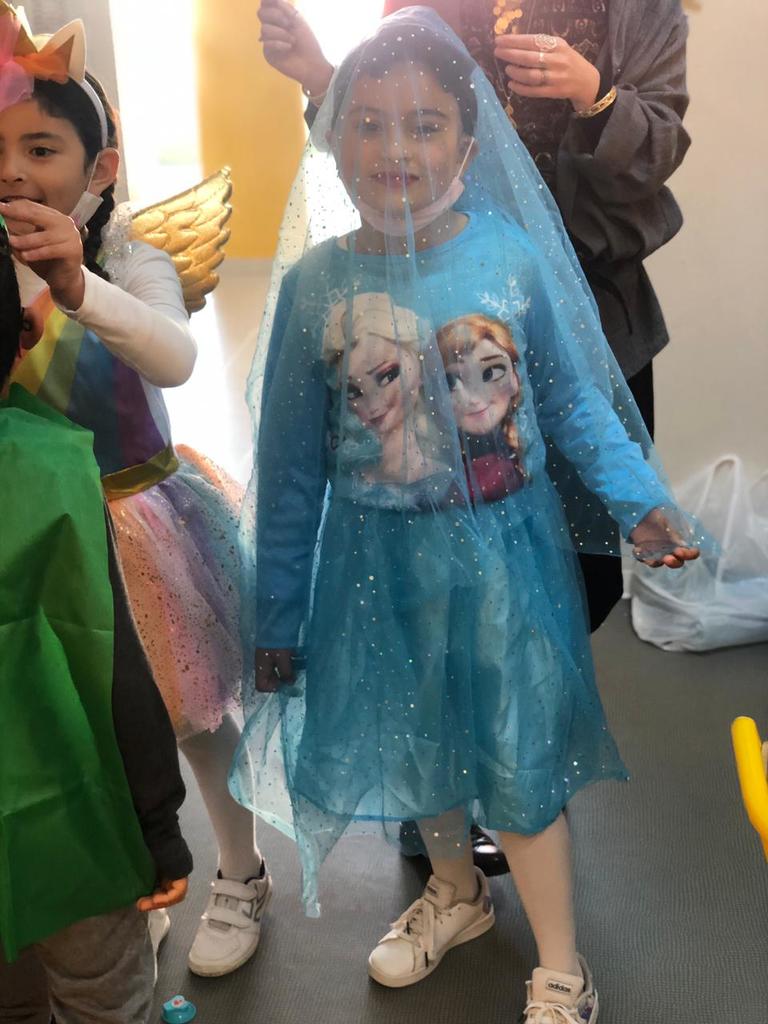 La photo souvenir du carnaval des CP A accompagnés de notre douce indienne Amani, l'enseignante d'arabe et de la plus belle des sorcières, Jihène, l'AESH de la classe (sans oublier la maîtresse Océane Sparrow).